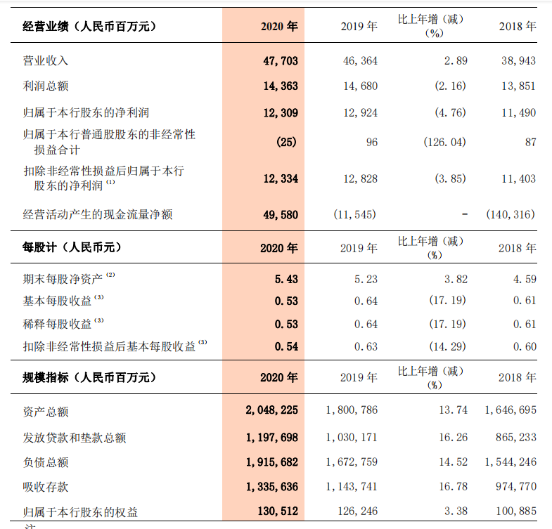 浙商银行2020年主要财务指标