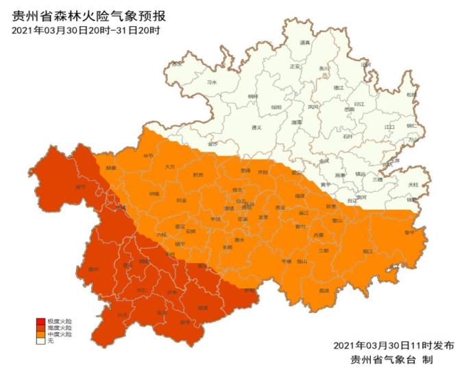 全省天气预报今天夜间到4月1日白天,省的东部地区多云间阴天有阵雨或雷雨,局地伴有强对流天气,其余地区多云到晴,中西部午后有4~6级偏南风及高森林火险气象等级,西南部个别县市有35℃以上高温天气;