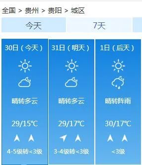 贵阳 今天夜间到明天白天晴间多云 15℃-30℃