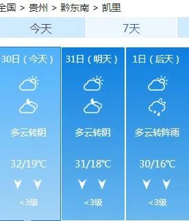 凯里 今天夜间阴 明天白天多云 19℃-31℃