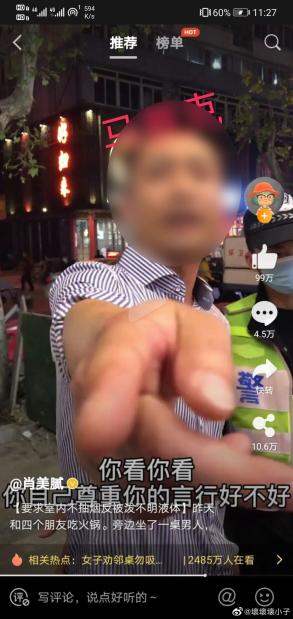 3月29日晚,肖小姐在成都西安中路一家美蛙鱼头店用餐时,因劝阻邻桌勿在室内吸烟被泼不明液体。30日中午,她在网上发布视频曝光此事,引发热议。