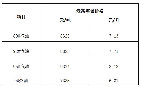 根据国家发改委官网新闻发布中心2021年3月31日公布的国内成品油价格调价信息,国内汽、柴油价格(标准品)每吨分别降低225元和220元。省发改委按照现行成品油价格形成机制调整我省汽油、柴油最高零售价格,自2021年3月31日24时起执行。其中,92号汽油7.71元/升,每升下调0.18元;95号汽油8.18元/升,每升下调0.2元;0号柴油6.31元/升,每升下调0.19元。