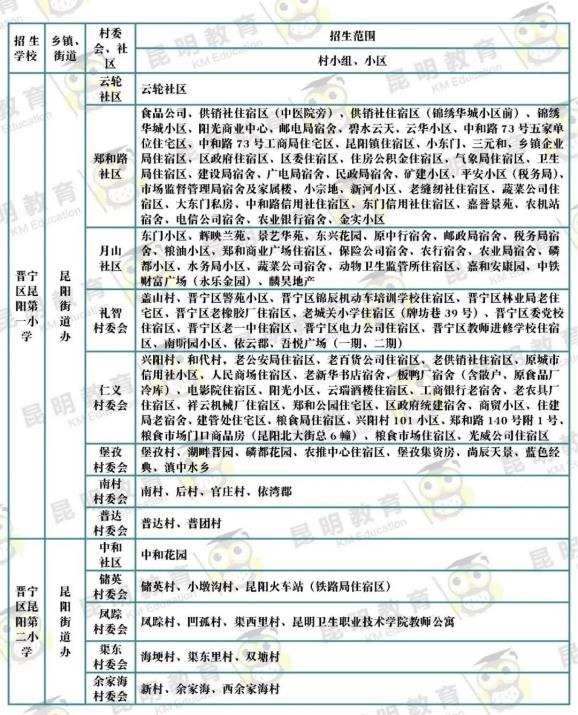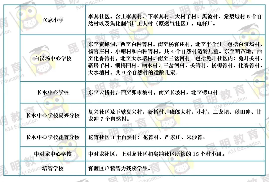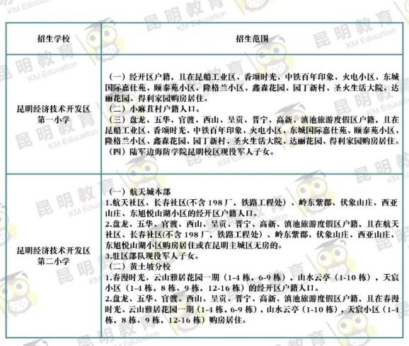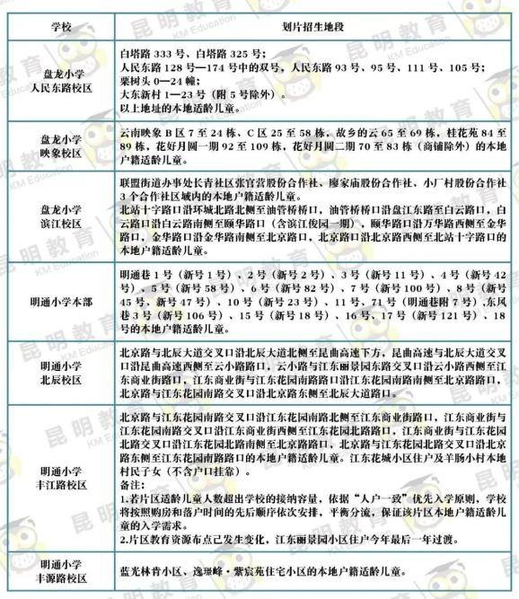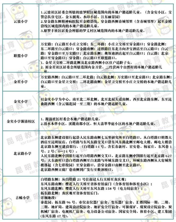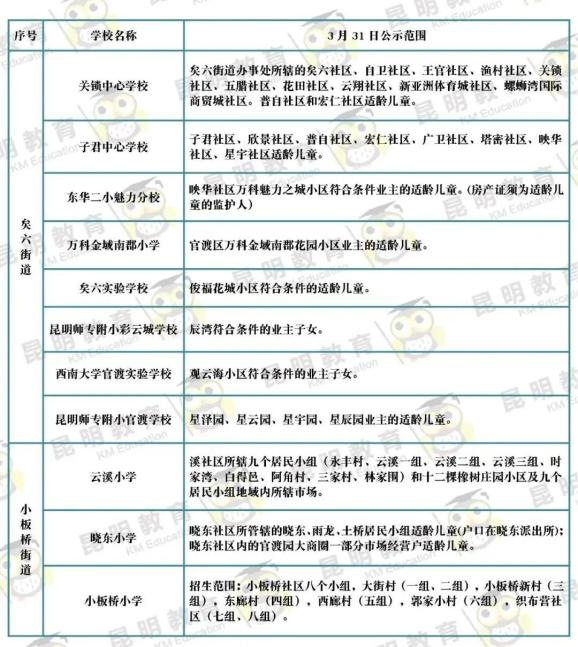 3月31日,昆明市主城区各公办小学公布招生范围~