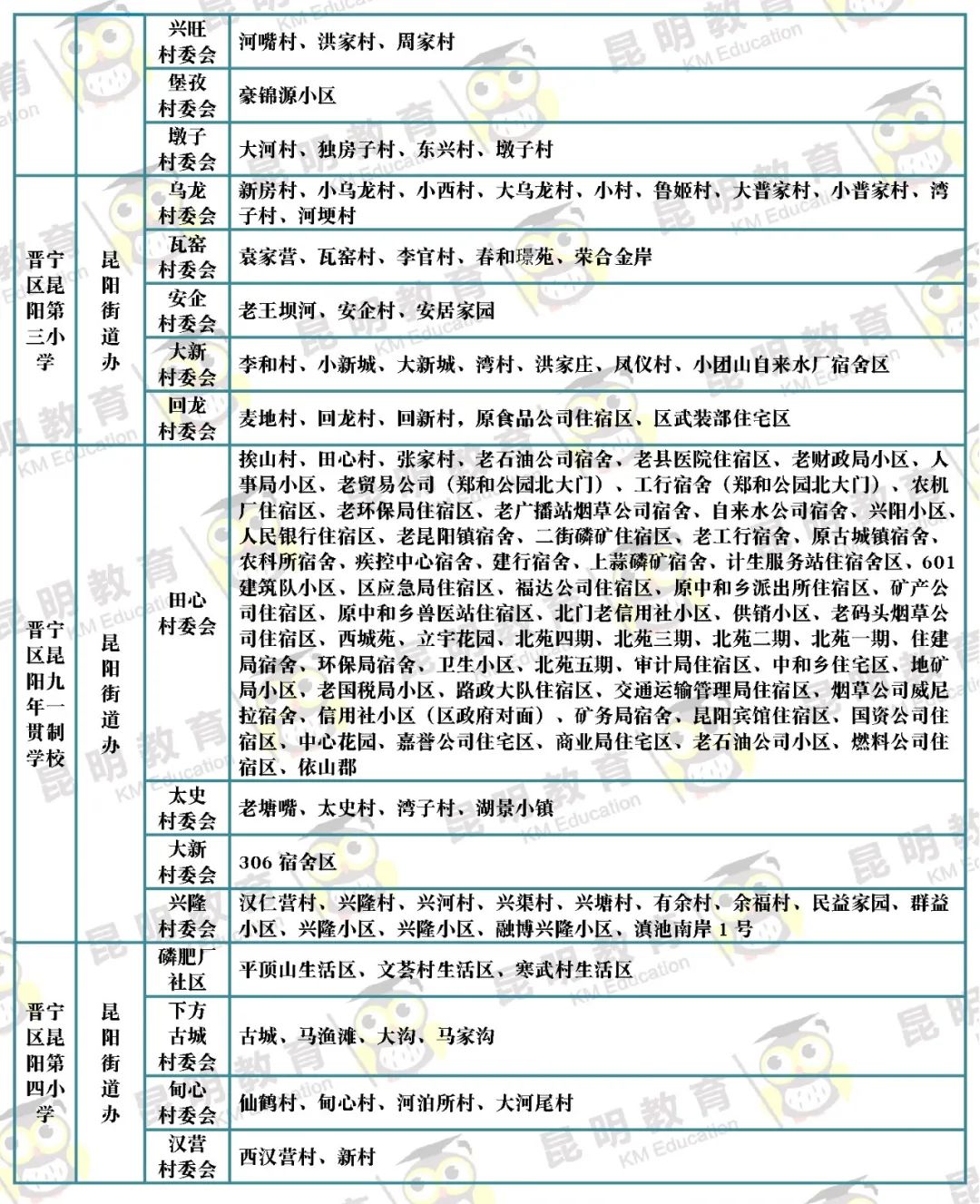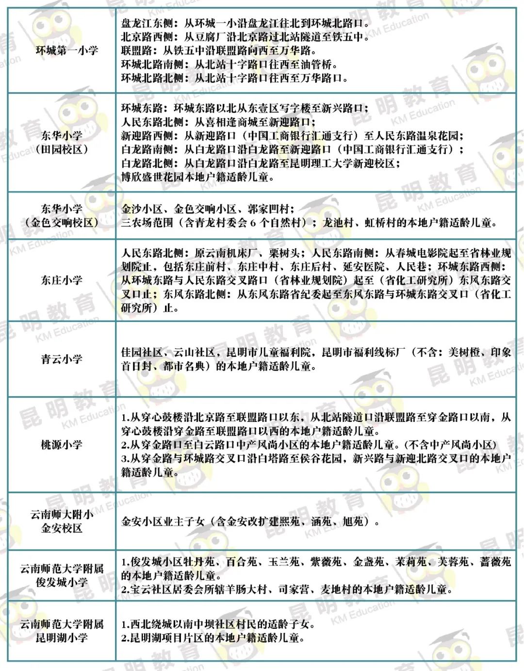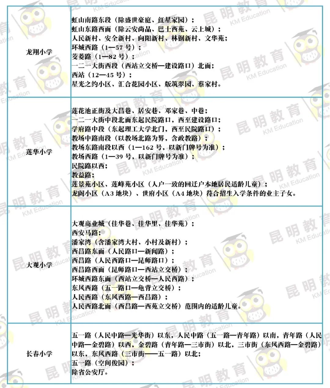 3月31日,昆明市主城区各公办小学公布招生范围~