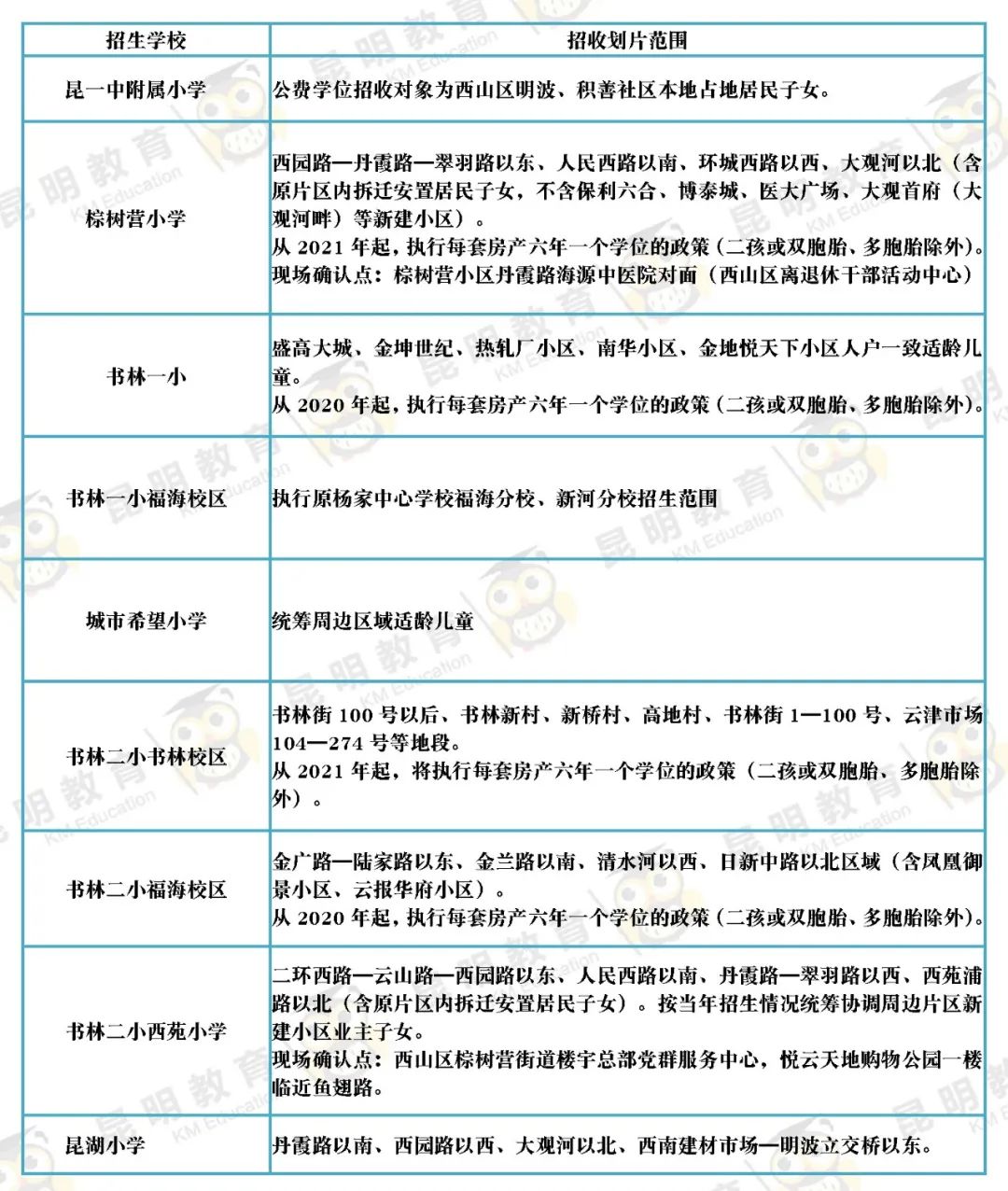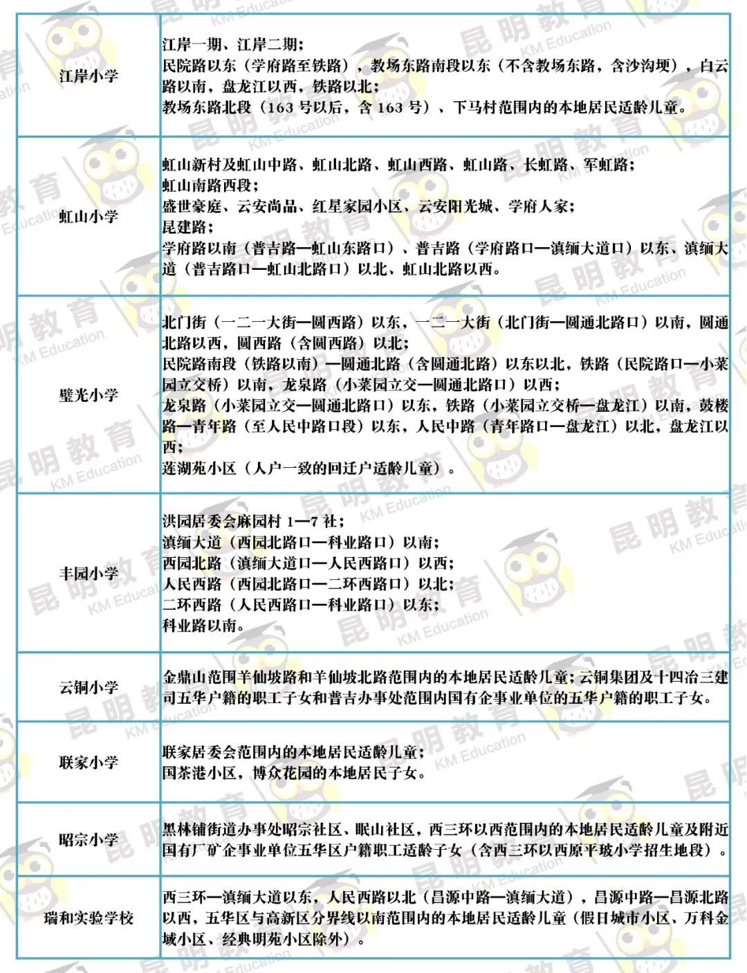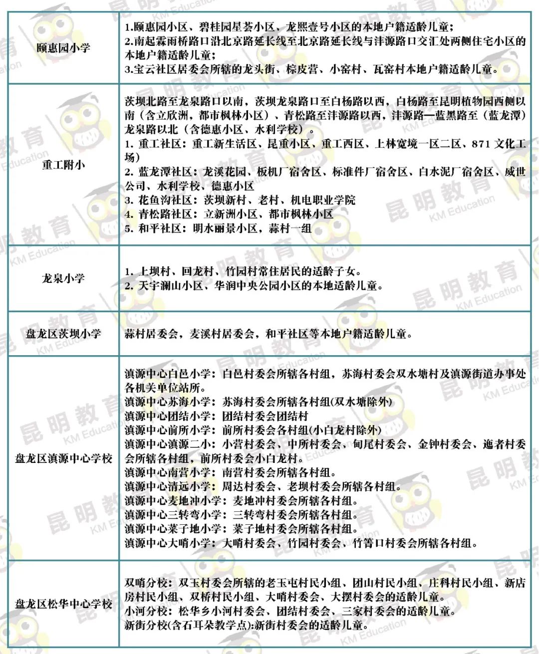 快收藏丨这才是最全,2021年昆明主城区216所小学划片信息!