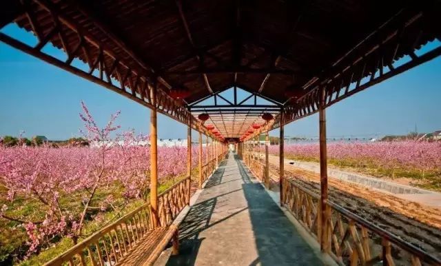 驾车赏花线路S19高速吕巷出口下,荣昌路右转 →朱吕公路左转 →金石公路 →桃花人家→月亮湾右转 →漕廊公路 →草莓研发中心 →廊下生态园(游客接待中心、停车场)→天母果园→中华村农家乐(停车场、餐饮)。