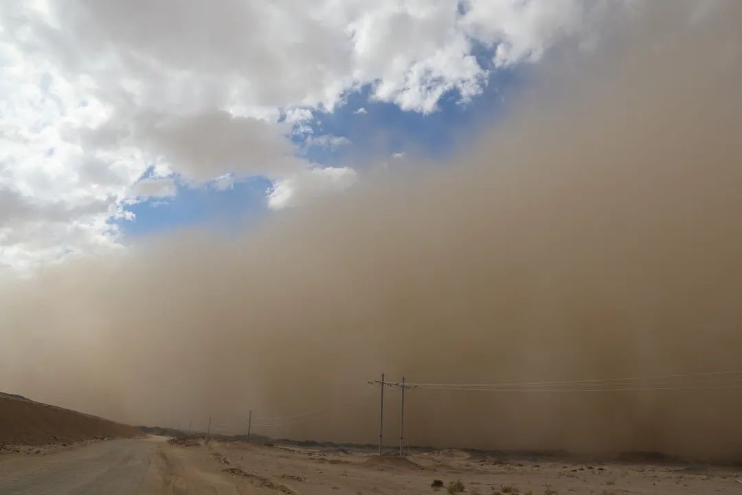 沿线的路异常难走,平日里浩瀚的戈壁一览无遗,可一旦遇到大风天气,道路便被风沙覆盖,形成一片混沌的世界。失去参照物,地不辨东西,天不分南北,打手机又没有信号,汽车在戈壁里穿行,左拐右拐,仿佛走在云里雾里,就是找不到路,那可真是呼天天不应,叫地地不灵。一次,职工小张和几个同事去现场勘测,可走着走着却迷路了,一望无际的戈壁滩上众人辨不清方向,手机又没有信号,而且当时天色已晚,为了安全只能守在原地等待救援。不料,这一等就等了一夜。