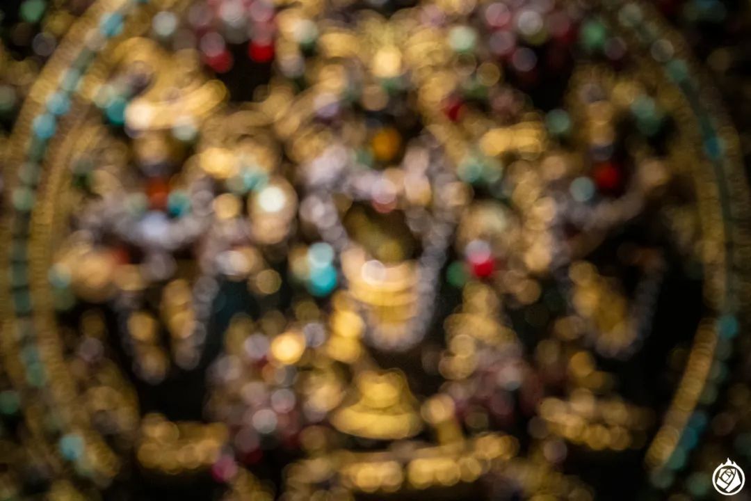 用水晶造就形体,用金银珠宝点缀,这样的工艺实在是对毗湿奴形象的完美刻画。这位摩耶之主,幻惑天王,仿佛有如无形之虚空,正似透明的水晶;但他又化身黑天,唱出《薄伽梵歌》,劝告世人要行动,行动才能赋予生命意义,是故拿金银珠宝为衣服刻画出凡尘帝王的外形又分外贴切。何其妙哉。
