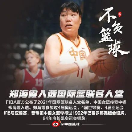 FIBA公布2021年国际篮联名人堂名单,中国女篮传奇中锋郑海霞入选。和郑海霞一起入选的还有原中国男篮主教练扬纳基斯等人。