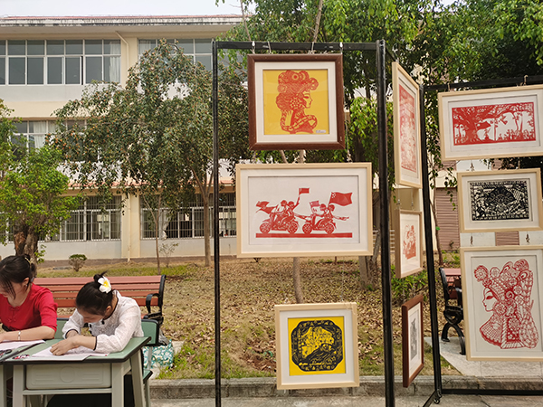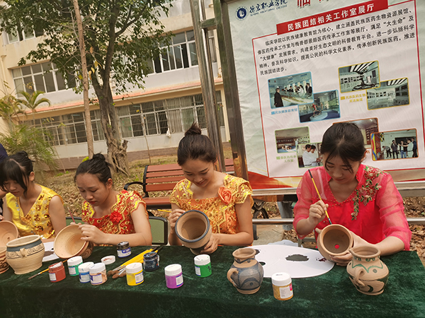 3月30日,记者在学院采访时,有幸参加了学校里几个特色的学生社团活动。听着学生们演奏的优美的葫芦丝,欣赏着他们跳的各民族的特色舞蹈、制作的油纸伞、景颇织锦和陶艺……还受邀参加了他们的大课操——景颇族的目瑙纵歌集体舞——伴随着欢快的音乐,整个学院成了一片欢快的海洋。