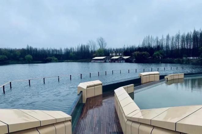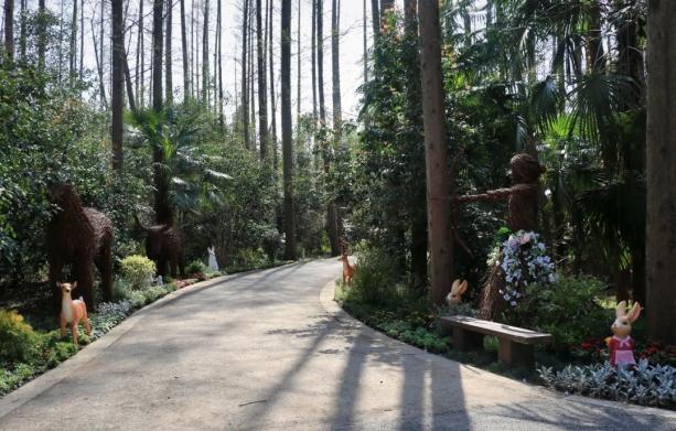 【水上栈道】在紫藤长廊的东北面,围绕水杉湖,新建了锦湖天地(森林管理服务中心),改建了童话王国(儿童娱乐区),并在湖中打造了一条下沉式的水上栈道。一路延伸到湖中的玻璃栈道,局部用大面积亚克力有机玻璃装饰,游客可以在玻璃栈道近距离观赏水生植物及浮游生物等(水生植物到5月初效果将更佳)。