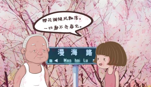 四月的烟台市区最浪漫的赏花地儿莫过于龙湖的樱花大道