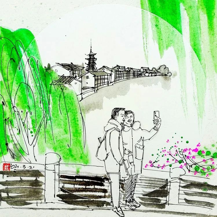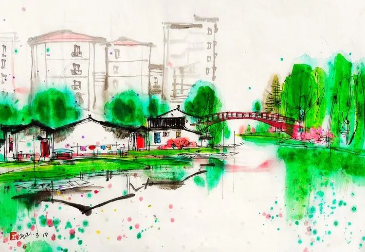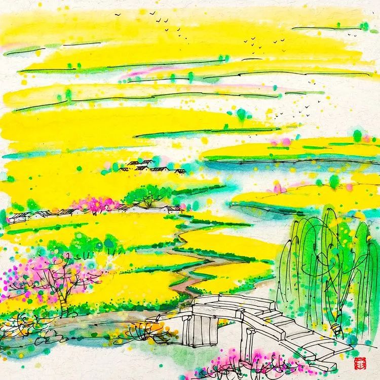 小辰光走过课植园后面的小石桥,就是田园风光,菜花腊腊黄时特别好看,春分晨课,画记忆中的角里春色图……��