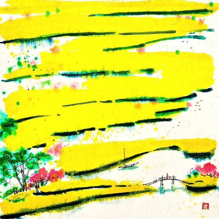 朋友问,如何画菜花田,于是我画了一幅给朋友看……��