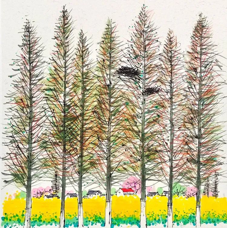 满树桃红是春,烟雨朦胧是春,成片的油菜花是春,池边柳树抽出的新芽也是春……万紫千红总是春,一起看看青浦画家夏培德笔下的春色吧~