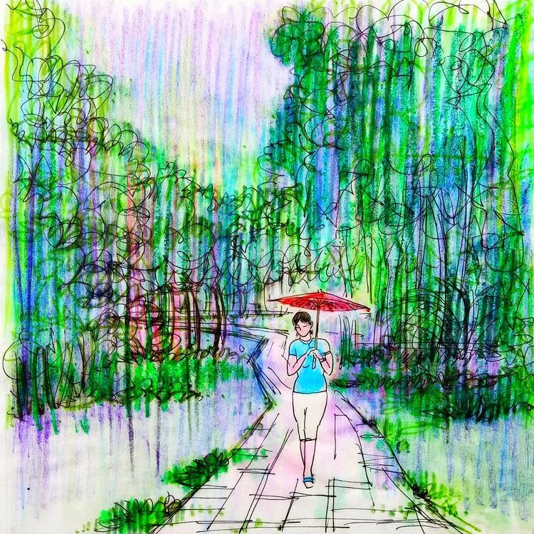 整理画稿,发现一张十多年前画雨中漫步图……��