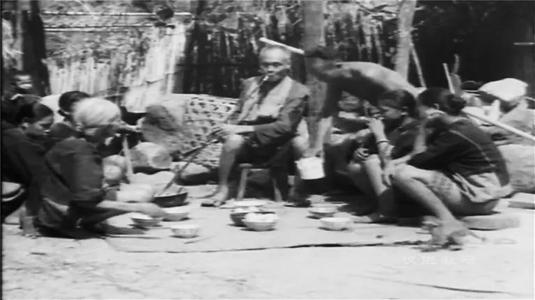 纪录片《海南红山之外》中黎族人席地而坐喝大碗茶的画面。海南省民族学会 提供