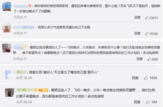 对此,有网友评论“有那么多力气骂乘务员,建议自己下去跑”,也有网友呼吁“多点包容吧”。
