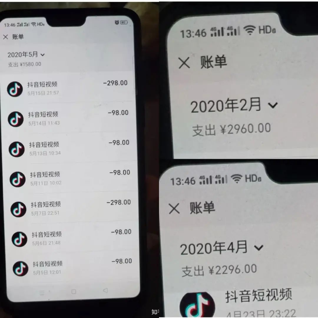 知乎网友@噗哈 晒出的账单显示,妈妈去年2月在抖音上支出2960元,4月在抖音支出2296元。要知道,两三千元在四线城市相当于很多人一个月的收入。
