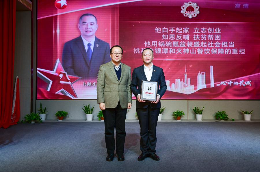 市退役军人事务局党组成员、副局长,上海退役军人志愿服务总队总队长李晓辉为兰云科颁奖