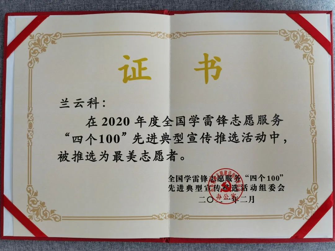 2020年度全国学雷锋志愿服务“四个100”先进典型名单公布,上海市“最美退役军人”兰云科当选全国“最美志愿者”。
