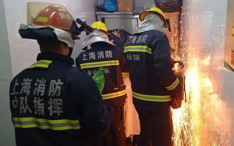 原标题:《一女员工手指被卡搅面机,金山消防锯断轴承成功营救!》