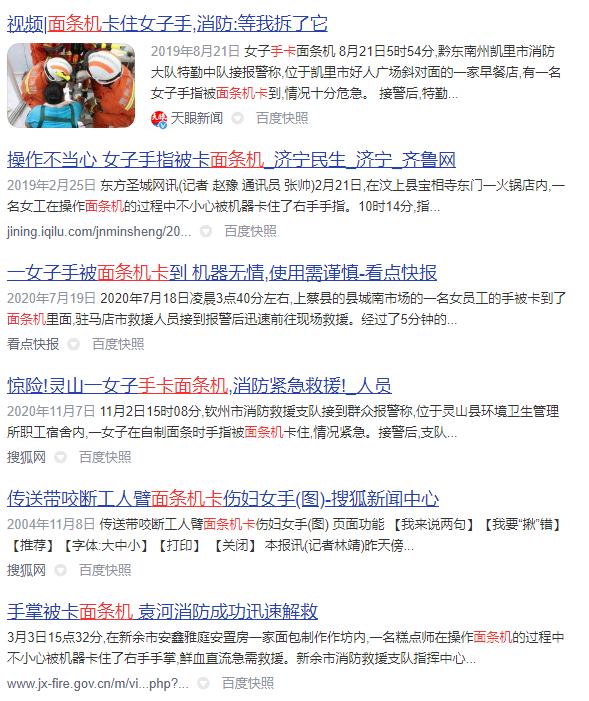 在使用压面机、和面机等具有一定危险性的机械设备时,应严格按照流程规范进行操作。一旦发生“咬”伤事故,应立即关闭机器,避免造成再次伤害;救援人员到来之前,切忌自行拆除机器,否则有可能导致伤情加重。