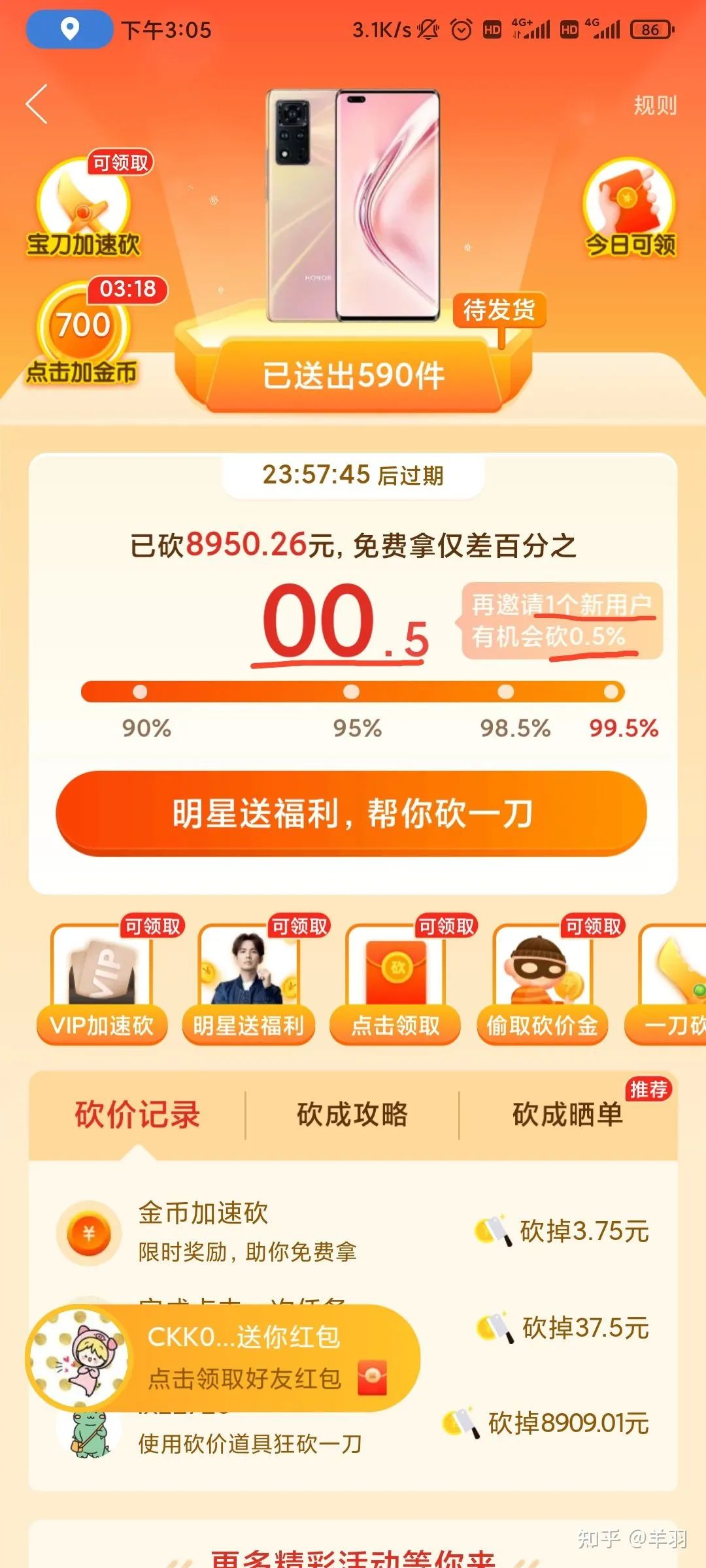 消费者反映的 “始终差 0.09%”,实际情况是 “已砍 99.1%,还差 0.9%“,因为部分免费砍的商品金额较大,拉少量用户砍掉的金额不足以让百分比变化,会让消费者以为砍价没有变化。