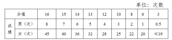 (二)引体向上或实心球(男)、一分钟仰卧起坐或实心球(女),分值16分。