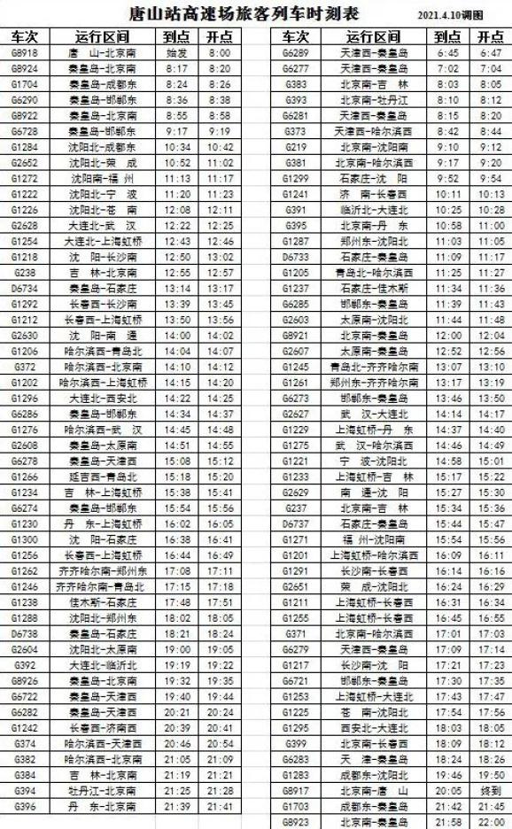 唐山~曹妃甸港D6688/5 D6686/7次自2021年4月10日起停运。