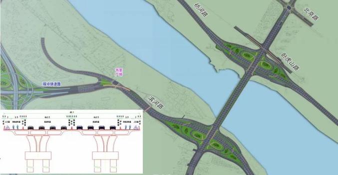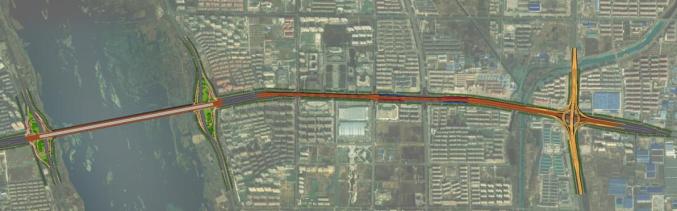 通达路枋河桥及两岸立交改造工程,位于通达路与祊河交会处,主桥为双向八车道,两岸建设互通立交,同时改造滨河路。其中通达路全长约1.7km,南起聚才路交叉口,北至北京路交叉口,双向8车道;滨河路全长约3km,东起育才路段西至书法广场,双向6车道。