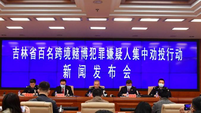 4月8日,吉林省打击治理跨境赌博专项工作领导小组办公室在长春召开新闻发布会,对百名跨境赌博犯罪嫌疑人开展集中劝投行动有关情况。