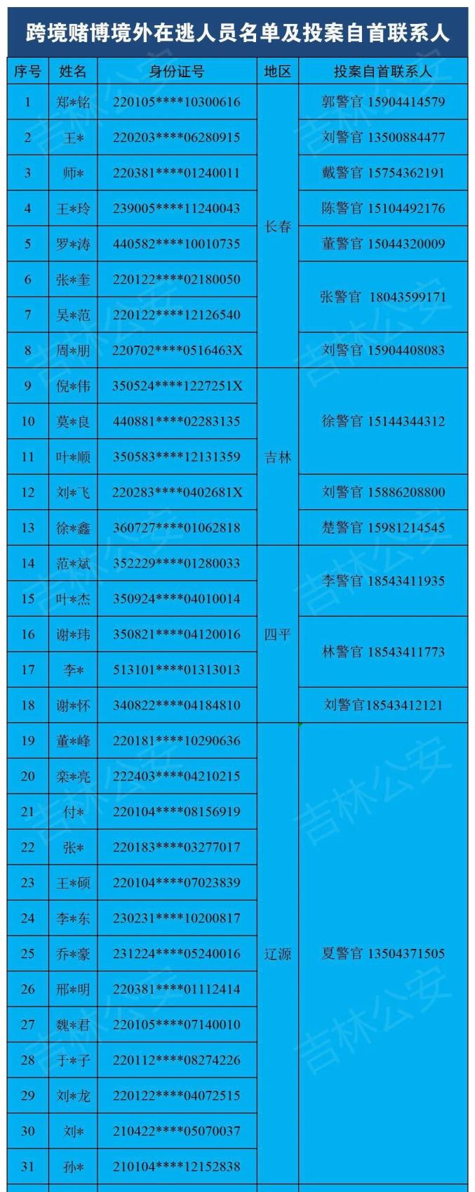 @跨境赌博犯罪嫌疑人,吉林公安喊你投案自首!