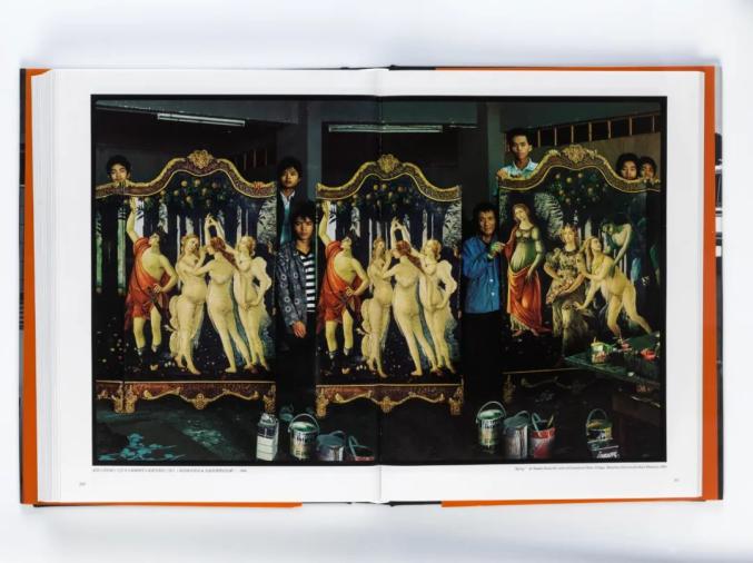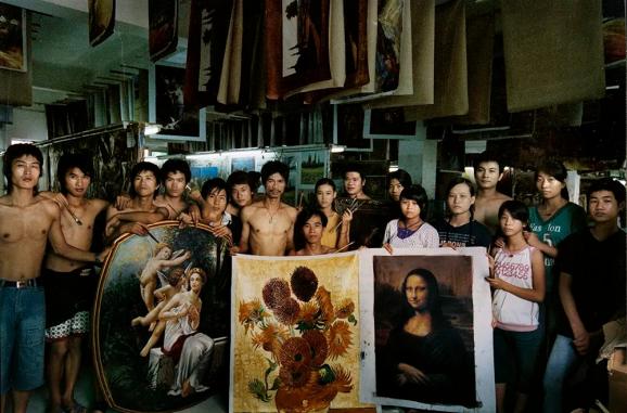 2005年8月,大芬油画村最大的油画生产线上集艺源工厂。来自潮州的画师周永久和他的弟子们,共超过500人