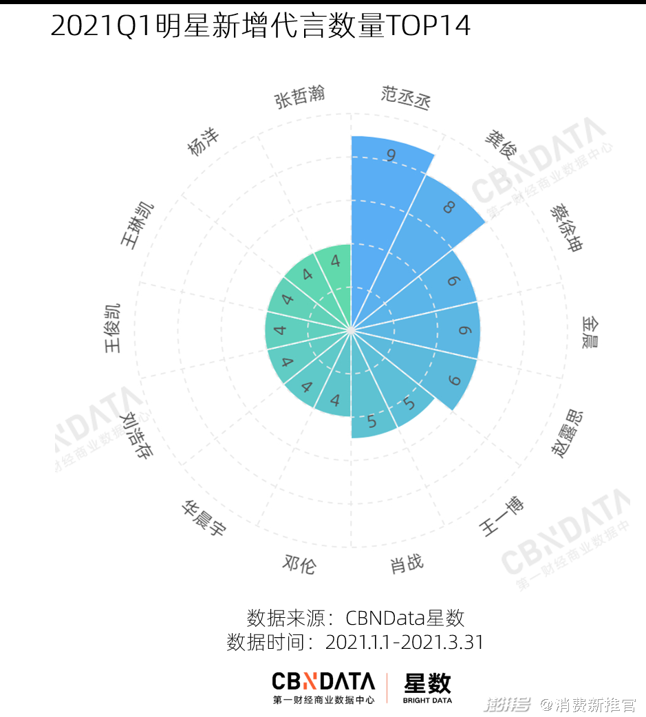 如果娱乐圈是职场,那么明星们也是需要进行季度复盘的打工人。2021第一季度,哪些明星的“业绩”超出预期?又有哪些冉冉升起的流量在进入品牌视野?CBNData星数根据后台代言数据,对Q1明星的商业表现进行了简单复盘。