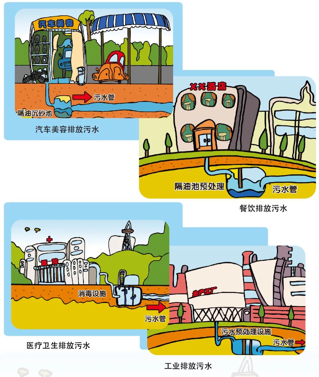 餐饮、加油站等排水单位排放的污水未经预处理直接排入污水管道