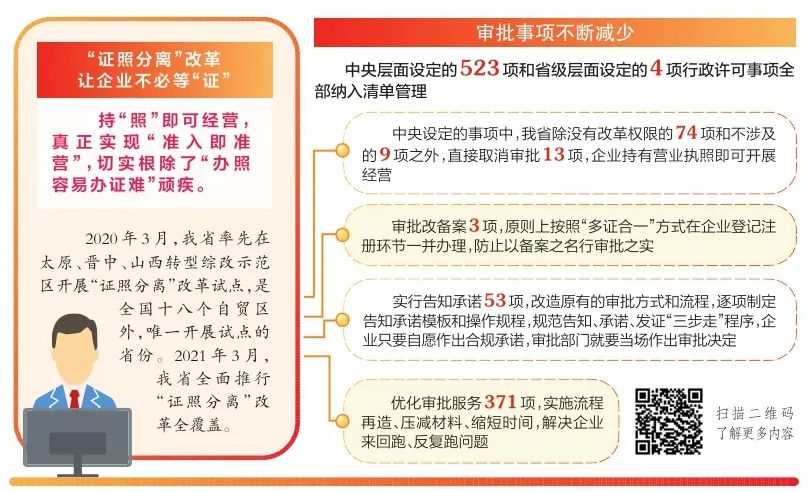 我们相信,通过这样的不断探索和努力,山西一定会让“证照分离”改革发挥无限潜能。