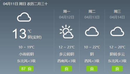 4月11日:全省阴天,陕北、关中南部部分、陕南局地有小雨。