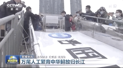 ▲10日,湖北宜昌放归了10000尾人工繁育第二代中华鲟。这是长江保护法实施后首次开展的大规模中华鲟放流活动。