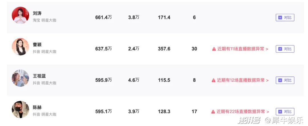 曾一度称霸淘宝带货界的“刘一刀”刘涛,近30天就只直播了两场带货,场均销售额仅有609.5万;去年战绩稳定的李诞最近一次直播还得追溯到1月17日,已接近三个月未开播,而他那次直播也仅拿下927.68万的销售额;而至于陈赫、戚薇等人,他们每月都仅能保留一至两场直播。