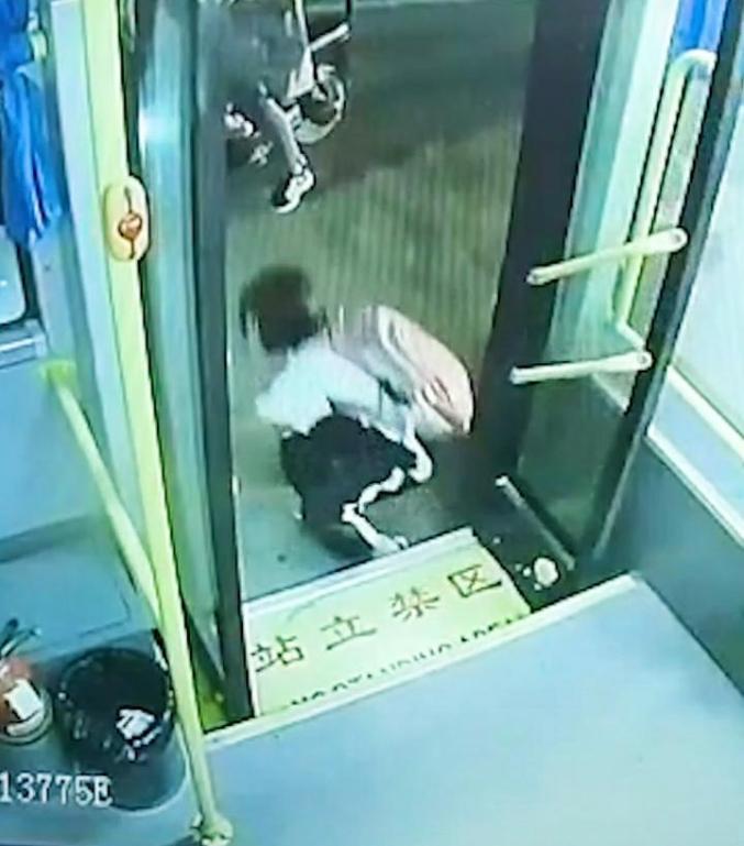 (公交车启动后被夹乘客摔倒)