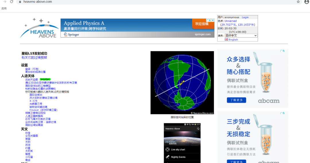 Heavens-Above网站截图 / https://www.heavens-above.com/main.aspx