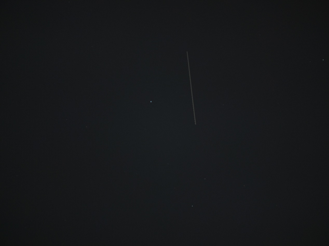 16秒延时曝光的ISS飞行轨迹,笔者2020.9.19摄于北京海淀区,ISS正在从织女星旁边飞过,下方偏右的星星是天津四 /