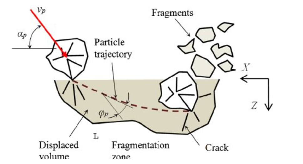 陨石体同月壤碰撞,形成一个个陨石坑,虽然边缘参差却大致都是圆形。然而当我们观察生活中的低速撞击时,其形成坑的过程其实就是撞击体将被撞击的物质机械地推离原有的位置,那么由撞击体传递给被撞击体的速度必然来自撞击体自身(也就是动量守恒地发生交换)。这样的话,一个倾斜的撞击体必然形成一个显著不圆的撞击坑。(如下图所示,Nguyen et al., 2015,10.1007/s00170-014-6514-z)
