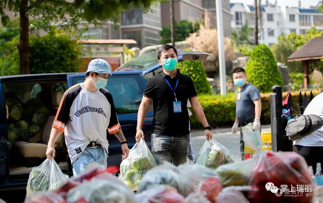 宅在家中群众生活有保障居民小区封闭管理,生活必需品如何保供?瑞丽市推出社区团购和“无接触式”配送。