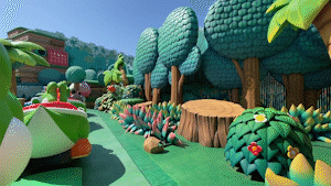 耀西冒险途中景色。除了园区内的互动小游戏和两个乘坐项目外,由其诺比奥大厨掌勺的马力欧主题餐厅也值得尝试。