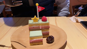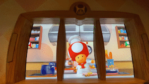 除了马力欧汉堡、耀西意面、超级蘑菇披萨碗、POW砖块提拉米苏等美食外,餐厅的布景和屏幕做成的 “窗子 ”外天气、时间都在不断变化的蘑菇王国的景色,也为用餐过程增添了不少乐趣。