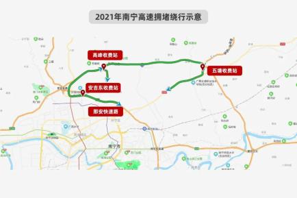 (四)G7201南宁绕城高速安吉东收费站发生拥堵时:出城:可选择绕开安吉东收费站,从南宁绕城高速高峰、五塘、八鲤、新江、玉洞西收费站出城。