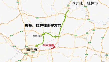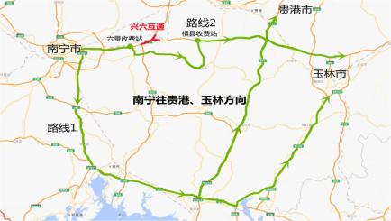 路线2:可从六景收费站出站后走公路从G80广昆高速横县收费站上高速公路。