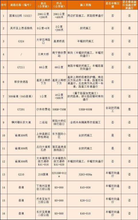 2.国道325线715KM+260M—752KM+860M处因道路改扩建封闭施工,禁止一切车辆通行。